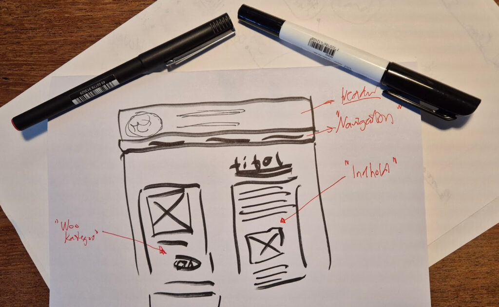 Indlæg er det indhold, som skabelonen Blogforside skal præsentere mellem headeren og footeren. Når skabelonen er klar kan vi skrive nogen blogindlæg og give dem et spændende layout. Begynd gerne med en wireframe: