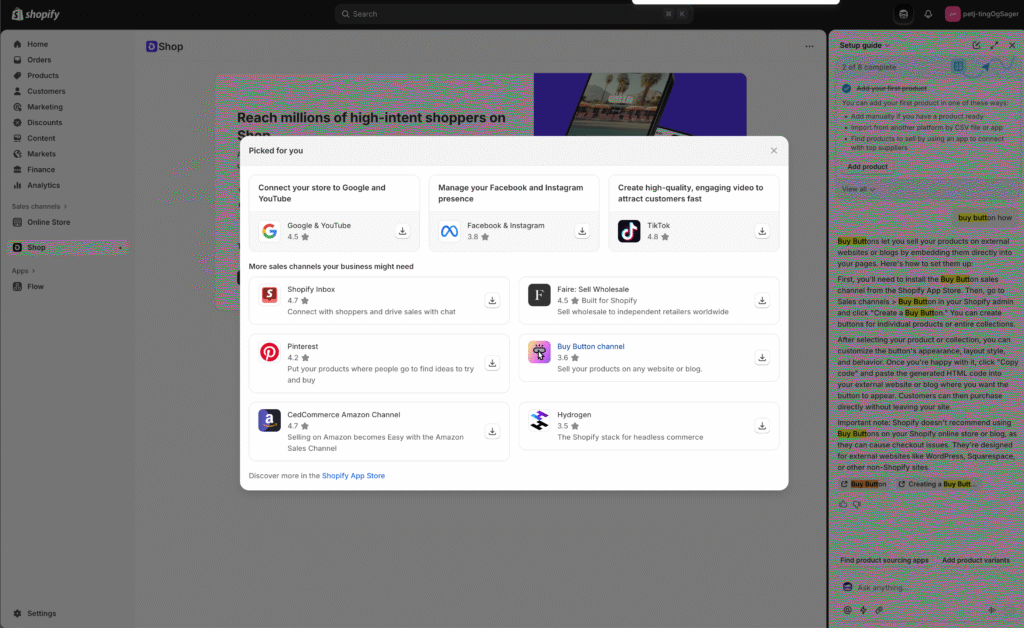 Skaber markup, styling og script der viser et eller flere produkter på websiden. Først skal Sale Button aktiveres som salgskanal. Derefter lægges koden ind i WP som tilpasset HTML. Herunder er et eksempel: